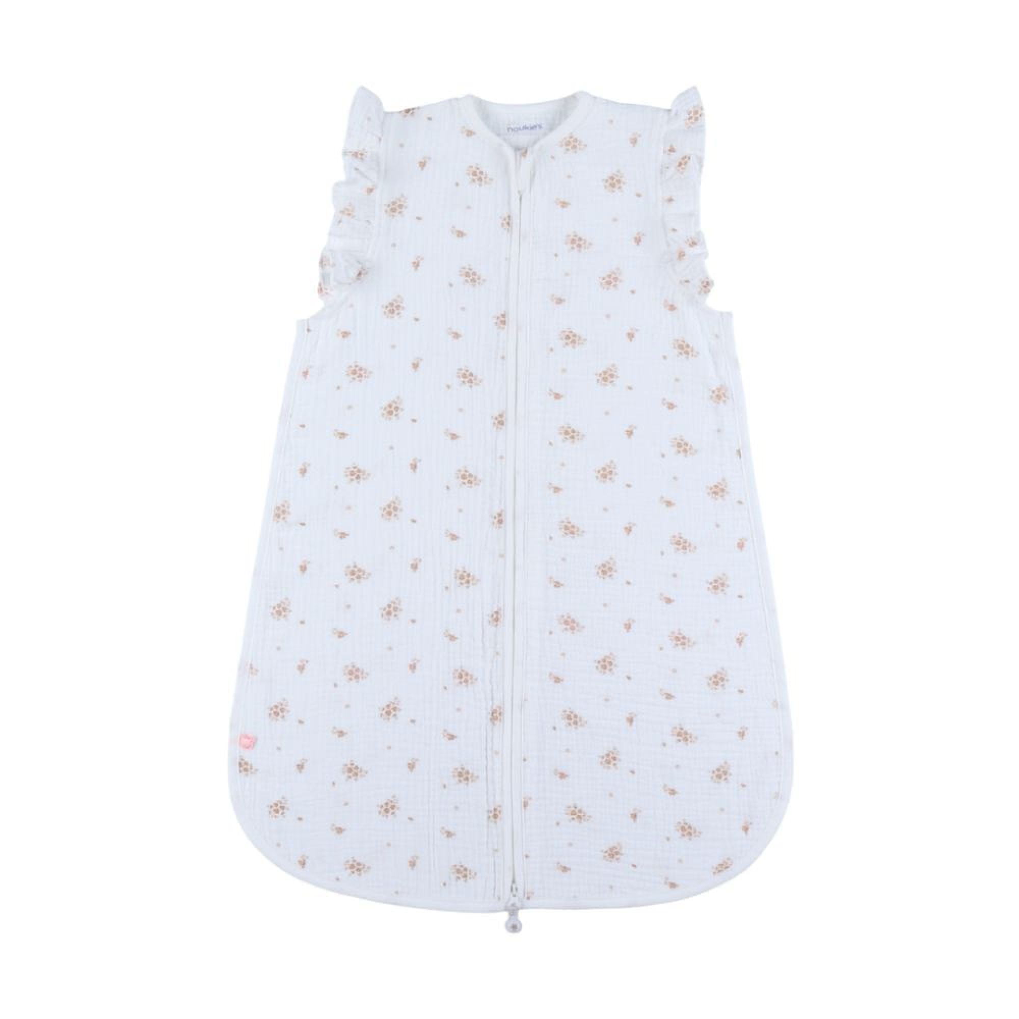 Cette gigoteuse en mousseline de coton bio offre une excellente respirabilité pour les nuits chaudes. Sa coupe sans manches favorise la circulation de l’air, tandis que son zip central simplifie l’habillage et le change. Les pressions aux emmanchures garantissent un ajustement sécurisé et confortable au fil de la croissance de votre bébé.