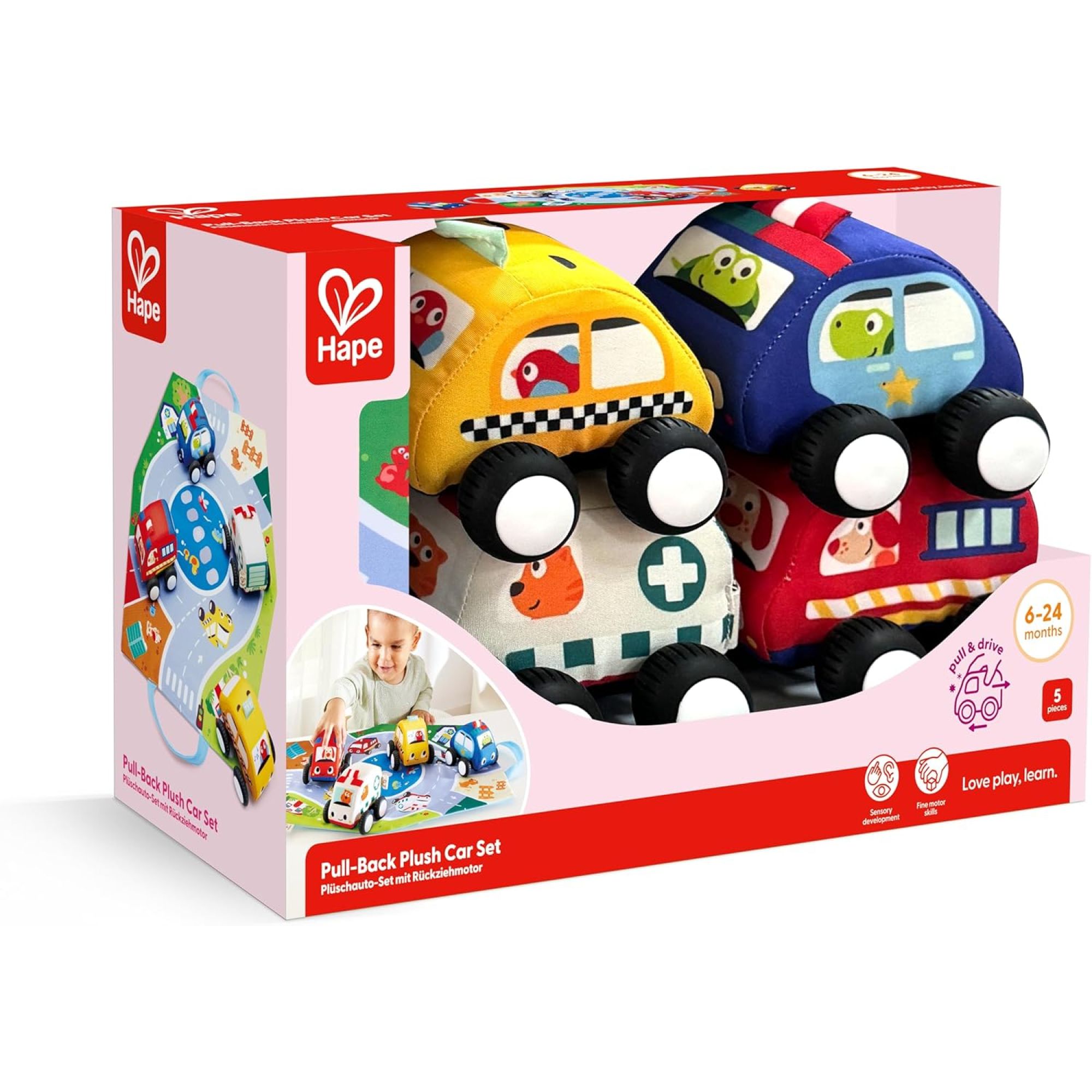 Découvrez cet adorable lot de voitures à rétrofriction lavables est parfait pour initier les enfants au plaisir du jeu de mouvement. Composé de 4 véhicules en tissu : un camion de pompiers, une ambulance, une voiture de police et un taxi . Chacun illustré d’animaux souriants, il encourage la reconnaissance visuelle et la motricité fine tout en stimulant l’imagination. Faciles à prendre en main, ces véhicules doux et silencieux roulent sans bruit : tirez-les simplement vers l’arrière, relâchez… et les voilà partis à toute allure ! Le sac de rangement inclus se transforme en circuit de jeu, pour un espace de jeu malin et pratique, à la maison comme en voyage.