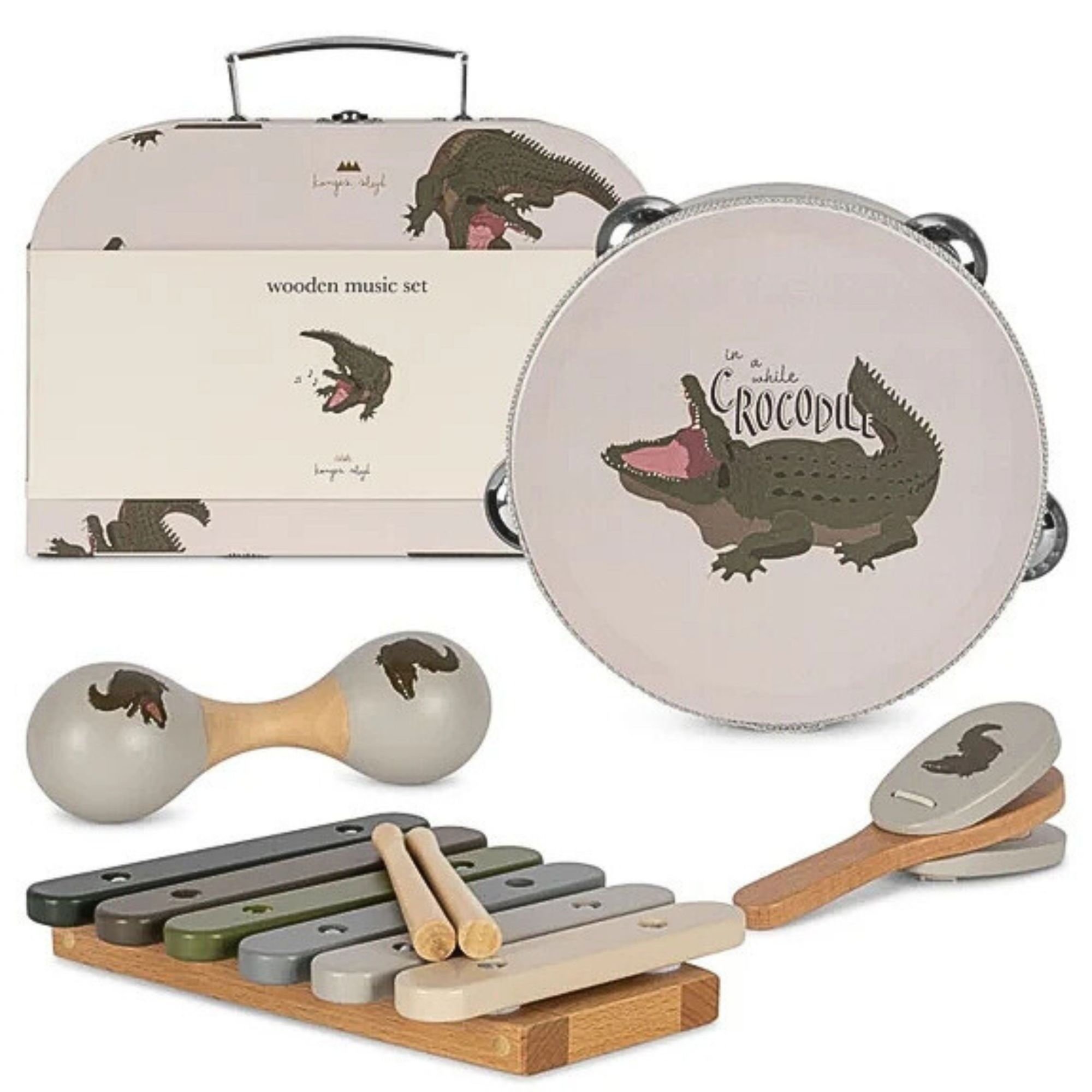 Craquez pour le Kit de musique en bois FSC de la marque Konges Slojd. Ce coffret d'instruments qui contient 6 pièces, sera idéal pour développer le sens du rythme de bébé tout en s'amusant. Fourni avec une petite valise pour un transport et rangement plus simple.