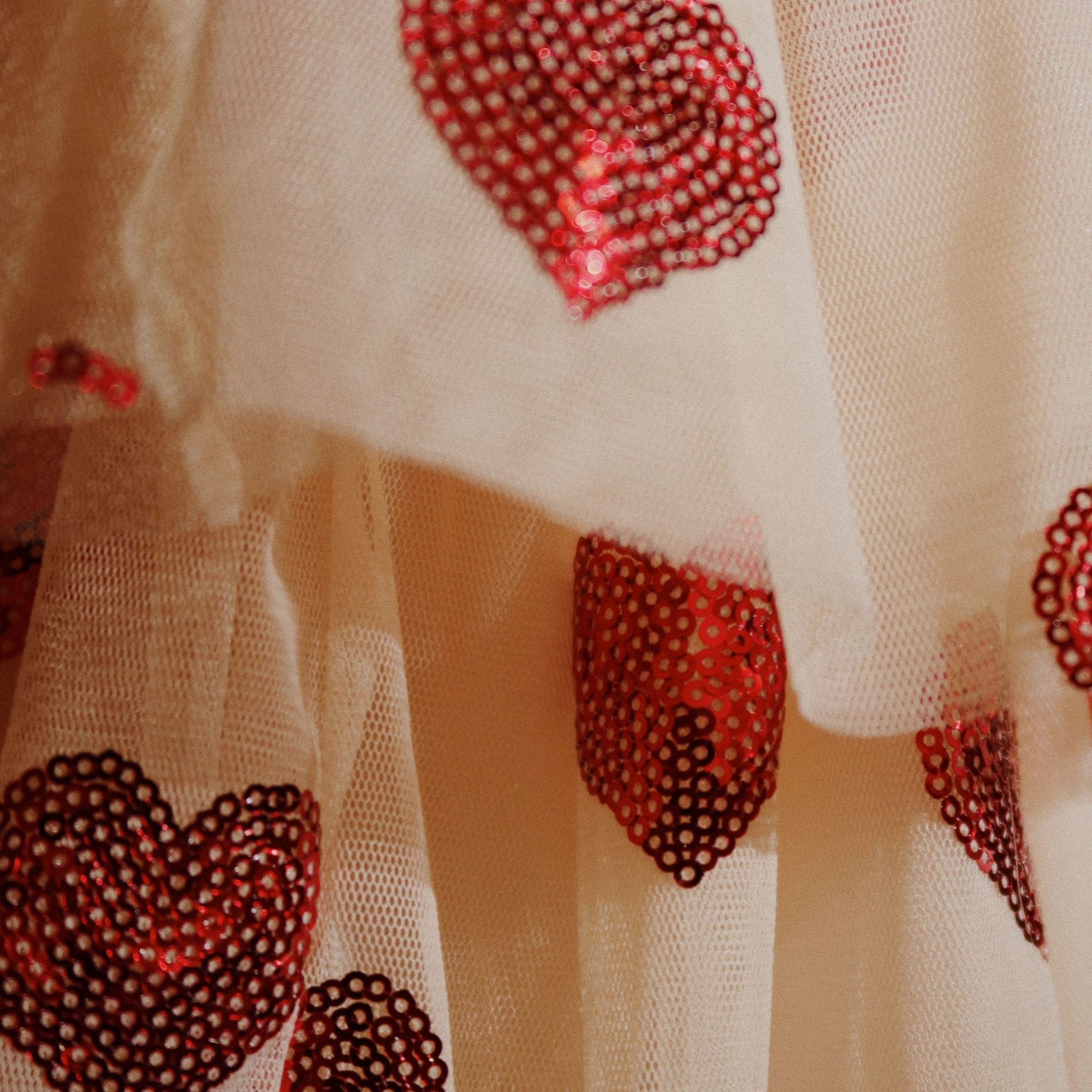 Cette jolie robe de fée est conçue avec une jupe volumineuse en tulle et des manches courtes en tulle pour un rendu magique. Elle apporte confort à votre petit-bout grâce à sa doublure en coton. Votre enfant sera ravie de porter cette jolie robe avec les motifs coeur pour devenir une véritable fée !
